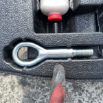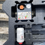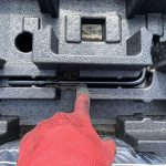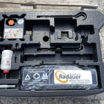 Ключ-тип Лула, Върток за крика, Кука за теглене, ТРиъгълник, Аптечка, Компресор с Аварийна Пяна за запълване на евентуално спукване на гума и Стиропорен органайзер, има спукано-показано е.
